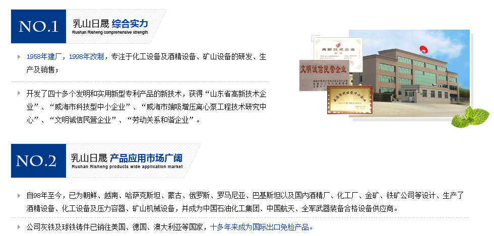 乳山市日晟機械制造有限公司位于山東省乳山市城區(qū)工業(yè)園日照路82號。公司地處膠東半島南端,東毗威海,北臨煙臺,西近青島,南瀕黃海,依山傍海,交通便利。公司于1958年建廠,原屬國家輕工部定點設(shè)備生產(chǎn)廠家,自1998年改制后,現(xiàn)有員工128人,其中工程技術(shù)人員26人,加工設(shè)備齊全,占地面積3萬平方米,是集鑄造生產(chǎn)、機械加...
